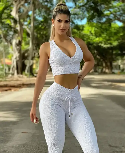 Conjunto Top Cropped Fitness e Calça Legging de Jacquard...