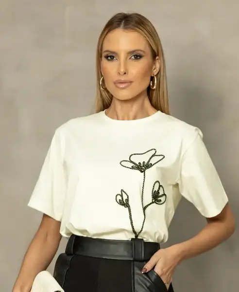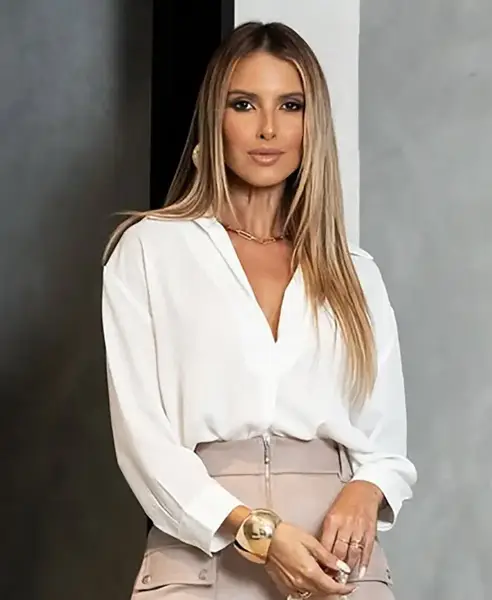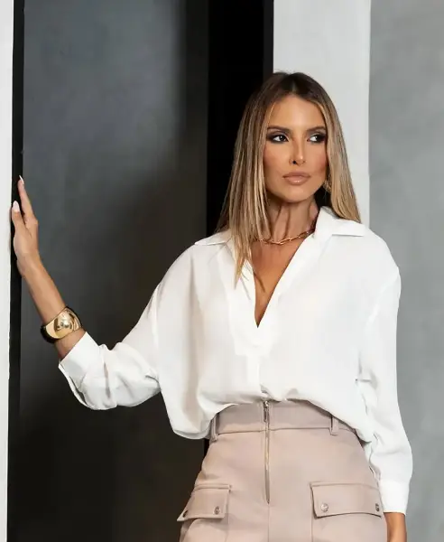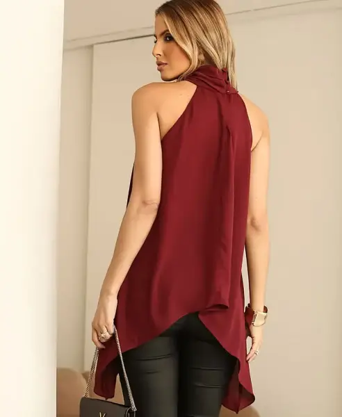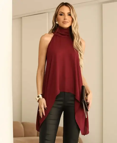 Blusa Gaia com Gola Alta e Recorte Assimétrico