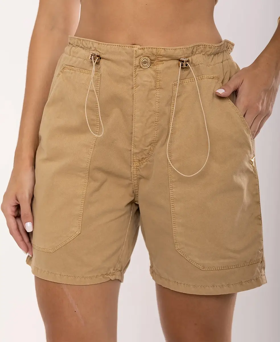 💡 Dica de estilo: Equilibre o caimento amplo do shorts com um top mais justo ou croppeds básicos. Use o ajustador metalizado em destaque, e finalize com tênis brancos casuais ou sandálias slide para o máximo de conforto.