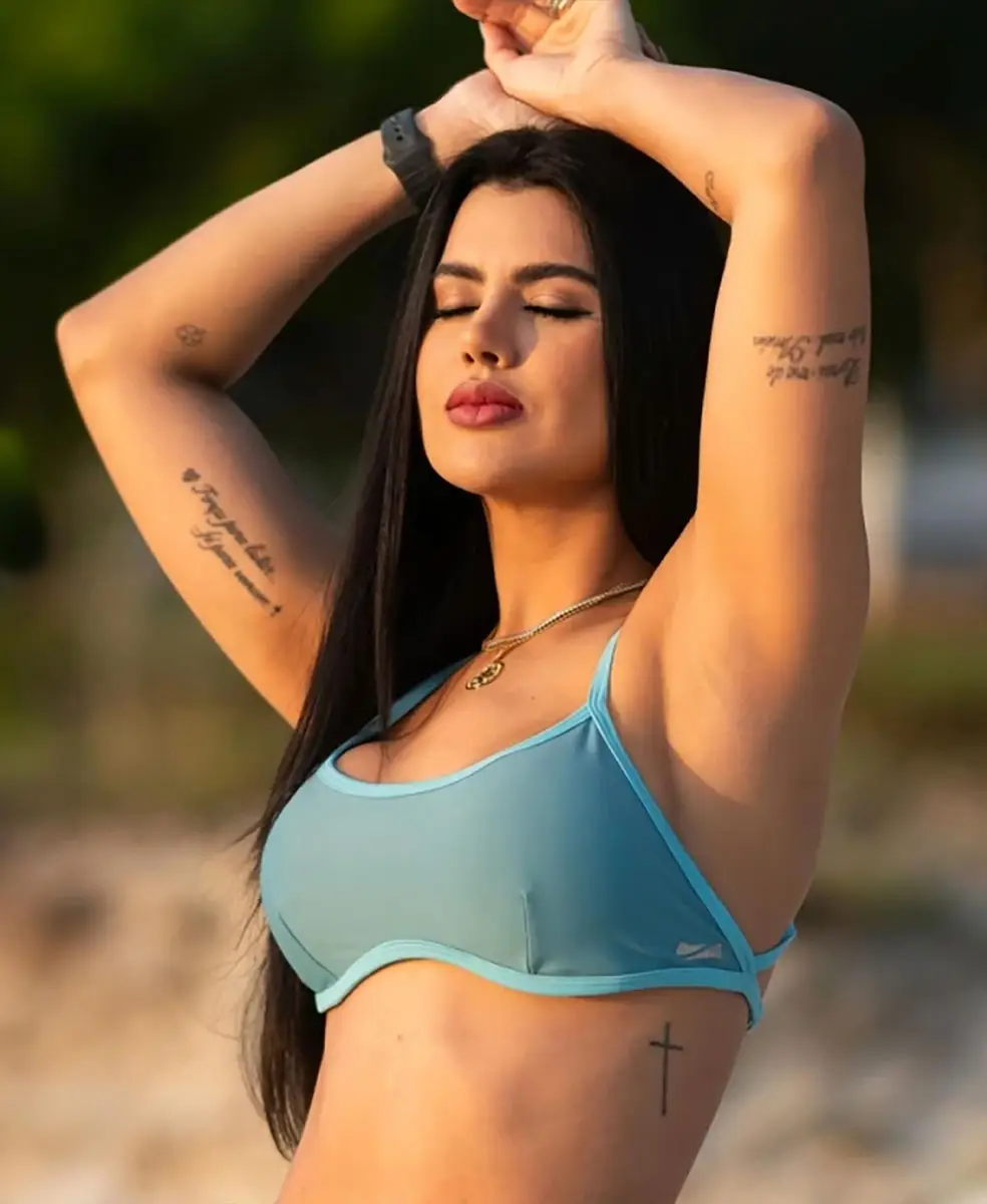 TECNOLOGIAS & FUNCIONALIDADES • Tecido leve e fresco — baixa compressão, ideal para o verão • Detalhes contrastantes em azul claro nos viés — sofisticação e visual esportivo • Regulagens personalizadas — ajuste perfeito ao corpo • Costas abertas — liberdade total de movimento e estilo • Bojo removível — praticidade e versatilidade • Proteção UV — segurança em treinos outdoor • Easy Care — lavagem simples, secagem rápida